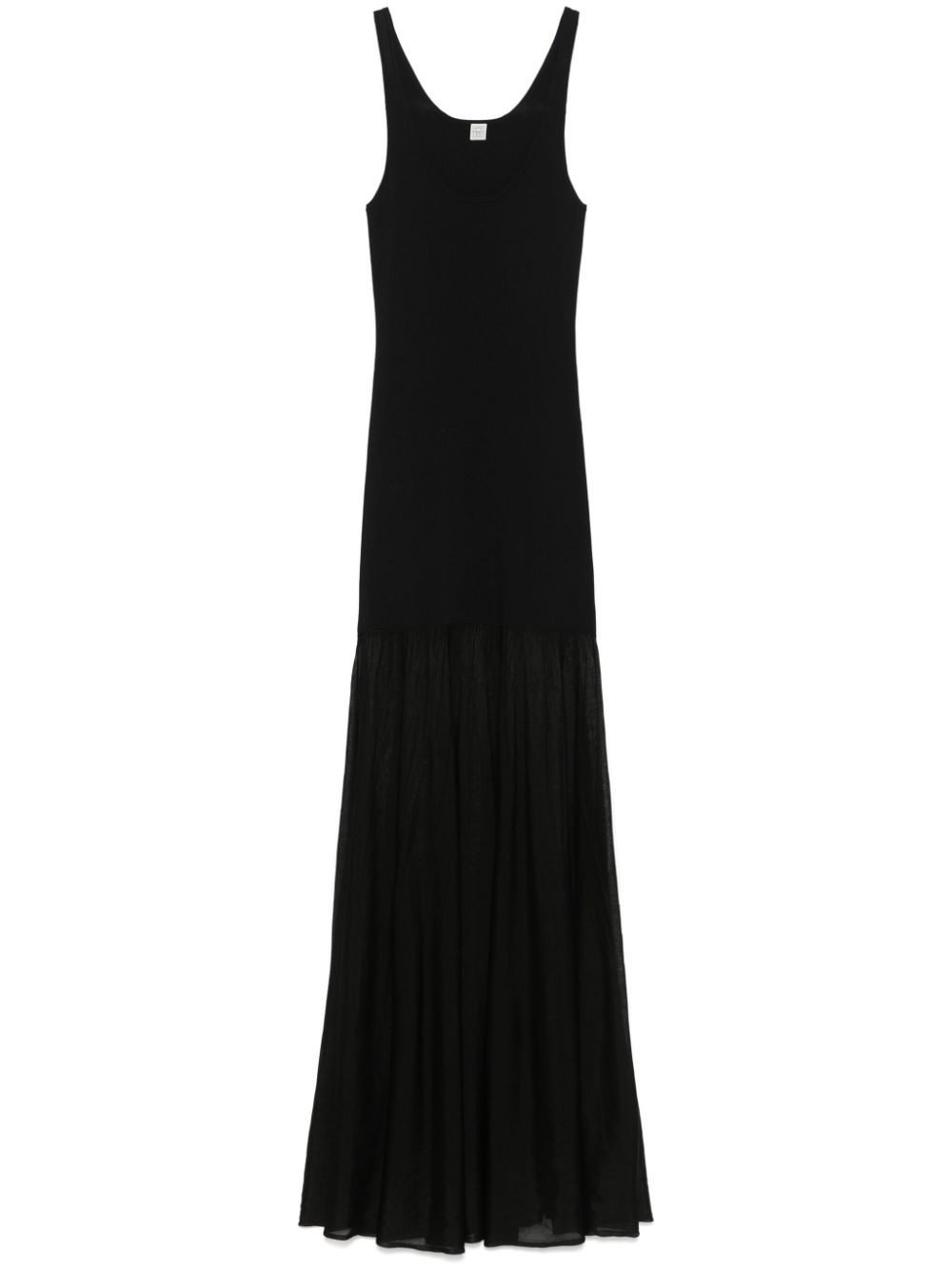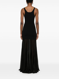 Evening maxi dress Highlights - Black - Fine knit - Panelled design - Scoop neck - Sleeveless - Unlined - Flared skirt - Long length Made in United States Composition Viscose 79%, Polyester 16%, Polyamide 4%, Elastane 1% SIZE & FIT Model measurements Height 5 ft 11 in(1.8 m) Bust/Chest 31.49 in(80 cm) Hips 36.61 in(93 cm) Waist 24.4 in(62 cm) FittingInformation Designed for a slim fit that sits just away from the body offering a close yet comfortable fit Made from a midweight stretch fabric, this piece offers elasticity and flexibility when worn