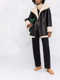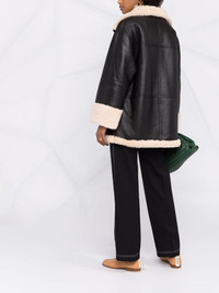 Signature shearling jacket This slouchy TOTEME jacket is produced in supple black leather and is lined with soft shearling. Designed for an oversized fit, the two-tone garment features a contrasting wide collar, turned-up hem and cuffs. Highlights - Black - Cotton - Shearling - Spread collar - Front zip fastening - Long sleeves - Two front welt pockets Imported Composition Cotton 100%