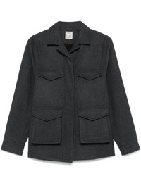 felted cargo jacket Highlights - Grey - Wool-recycled polyester blend - Felted - Melange effect - Concealed front button fastening - Notched lapels - Long sleeves - Buttoned cuffs - Four front patch pockets - Full lining - Straight hem Imported Composition Outer: Wool 50%, Recycled Polyester 50% Lining: Cotton 100%