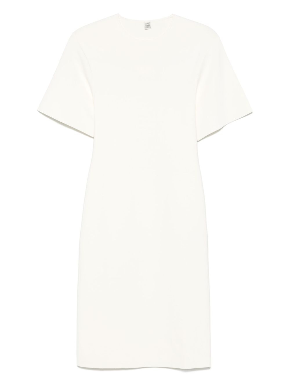 fine-knit midi dress Highlights - White - Crew neck - Short sleeves - Below-knee length Imported Composition Viscose 53%, Recycled Polyamide 45%, Elastane 2% SIZE & FIT Model measurements Height 5 ft 11 in(1.8 m) Bust/Chest 31.49 in(80 cm) Hips 35.82 in(91 cm) Waist 24.8 in(63 cm) FittingInformation Designed for a slim fit that sits just away from the body offering a close yet comfortable fit Made from a midweight stretch fabric, this piece offers elasticity and flexibility when worn