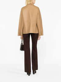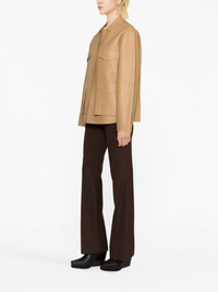 Army leather jacket Aligning with the brand’s minimalist aesthetic, this leather jacket arrives in a smooth, camel-brown leather construction. The piece features concealed front fastening which lends a refined appeal and boasts a flared hem for a subtle addition of volume. Highlights - Camel brown - Calf leather - Two front patch pockets - Concealed front fastening - Classic collar - Long sleeves - Flared hem Imported Composition Calf Leather 100% SIZE & FIT Model measurements Height 5 ft 10 in(1.79 m) Bust/Chest 31.49 in(80 cm) Hips 35.03 in(89 cm) Waist 23.62 in(60 cm) Measurement SLEEVE LENGTH 24.01 in(61 cm) LENGTH 27.16 in(69 cm) FittingInformation Designed to be unstructured, offering a loose fit throughout Soft leather has a supple and smooth construction offering some flexibility This piece fits true to size – take your usual size
