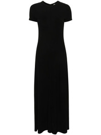 Fluid jersey maxi dress Highlights - Black - Stretch-jersey - Vertical seamed - Round neck - Short sleeves - Flared skirt - Ankle-length - Straight hem - Unlined - Concealed rear hook and zip fastening Imported Composition Viscose 96%, Spandex/Elastane 4% SIZE & FIT Model measurements Height 5 ft 11 in(1.8 m) Bust/Chest 32.67 in(83 cm) Hips 36.22 in(92 cm) Waist 24.4 in(62 cm) FittingInformation Designed for a slim fit that sits just away from the body offering a close yet comfortable fit Made from a midweight fabric This piece fits true to size – take your usual size