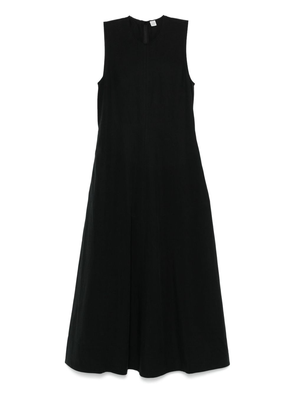 fluid summer dress Highlights - Black - Rear zip fastening - Crew neck - Sleeveless - Flared Imported Composition Lyocell 75%, Linen/Flax 25% SIZE & FIT Model measurements Height 5 ft 10 in(1.78 m) Bust/Chest 33.85 in(86 cm) Hips 36.61 in(93 cm) Waist 26.77 in(68 cm) FittingInformation Designed for a close fit at the chest and waist with a loose fit at the hip Made from a midweight non-stretch fabric