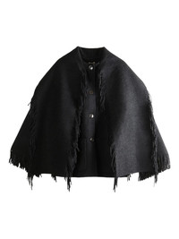 fringe button jacket Highlights - Black - Wool - Fringe trim - Button fastening - High neck - Patch pocket Imported Composition Fabric 100%