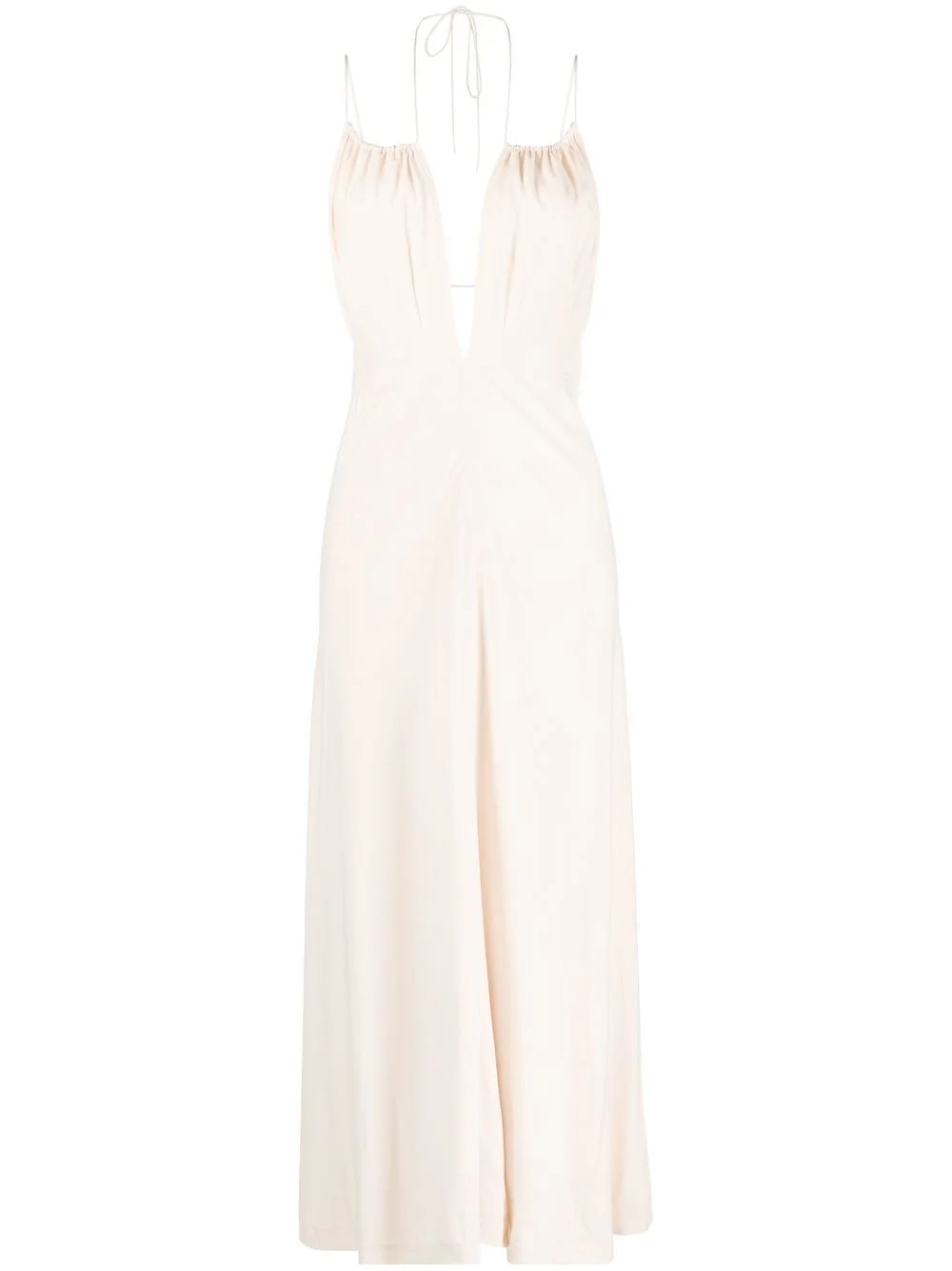 halterneck sleeveless maxi dress TOTEME's understated yet contemporary take on garments permeates its SS23 edit, as shown by this cream-hued maxi dress. Cut for an ankle length, this sleeveless number is defined by its halterneck tie-fastening whilst cut-out accents elevate its tonal construction. Imported Composition Outer: Viscose 100% Lining: Viscose 100% SIZE & FIT Measurement HIPS 39.37 in(100 cm) LENGTH 53.54 in(136 cm) WAIST 31.49 in(80 cm) Washing instructions Dry Clean Only