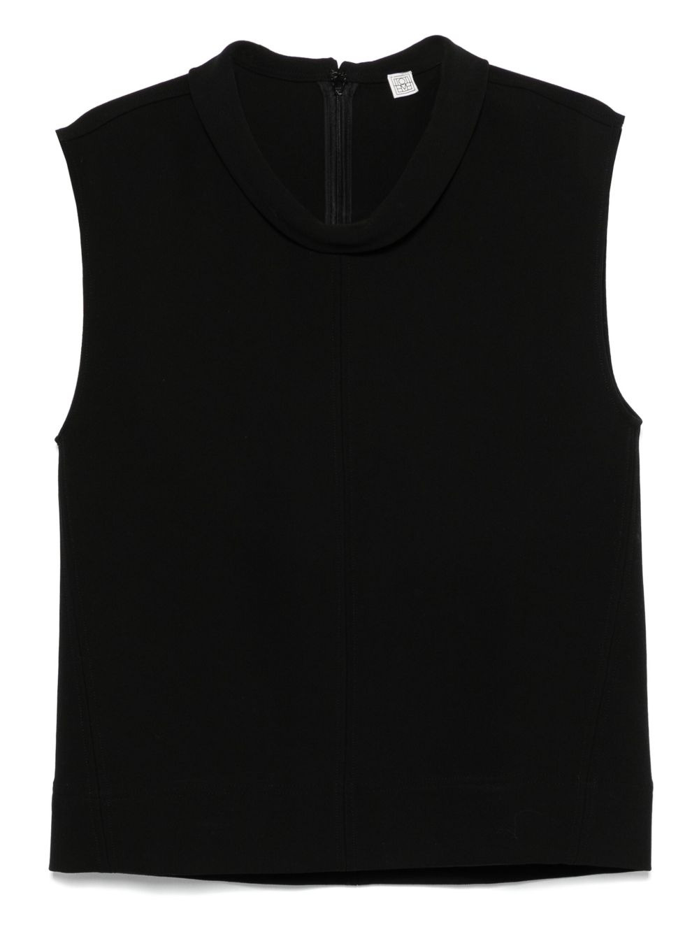 high-neck blouse Highlights - Black - Concealed rear zip fastening - Sleeveless - Seam detailing Imported Composition Viscose 71%, Cotton 29% SIZE & FIT Model measurements Height 5 ft 10 in(1.79 m) Bust/Chest 33.07 in(84 cm) Hips 35.82 in(91 cm) Waist 24.01 in(61 cm) FittingInformation Designed for a relaxed fit, this piece allows for comfort and movement when worn Made from a midweight non-stretch fabric, this piece offers minimal elasticity when worn
