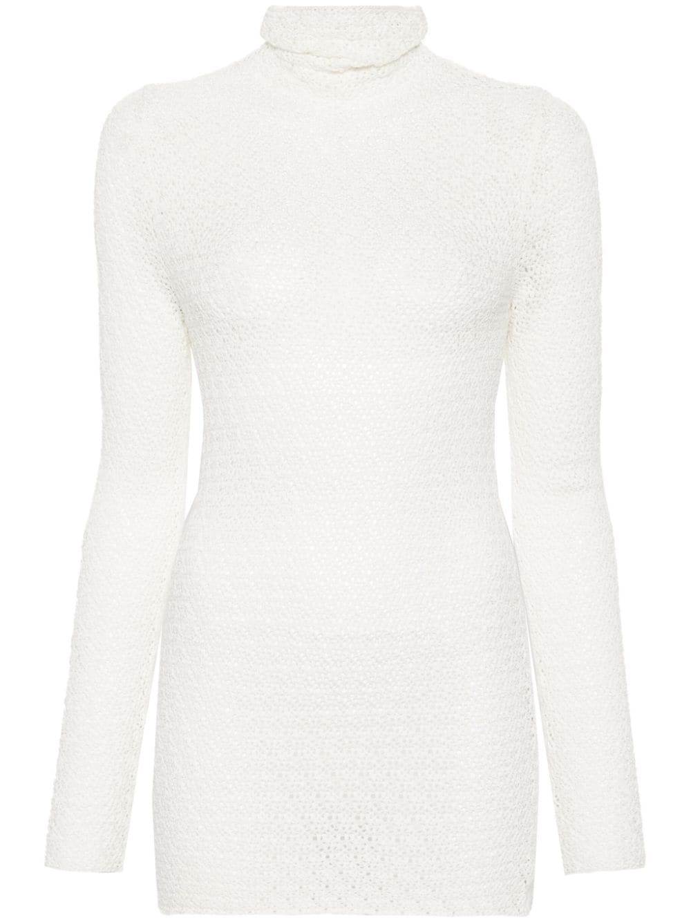 high-neck crochet-knit jumper