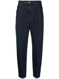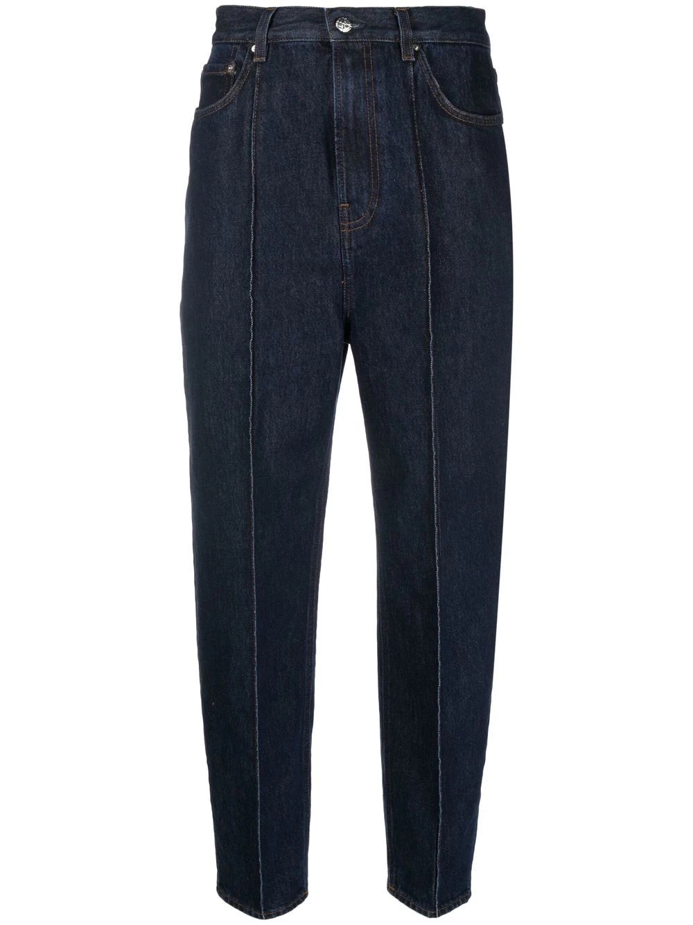 high-waist cropped jeans Highlights - Indigo blue - Organic cotton - High waist - Belt loops - Front button fastening - Tapered leg Made in Italy Composition Organic Cotton 100% SIZE & FIT Model measurements Height 5 ft 11 in(1.8 m) Bust/Chest 31.49 in(80 cm) Hips 36.61 in(93 cm) Waist 24.4 in(62 cm) Washing instructions Machine Wash