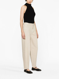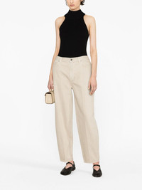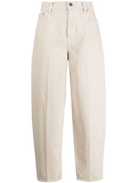 high-waist tapered-leg jeans At the heart of TOTEME is the idea of creating a daily uniform, and that is reflected in the design of these jeans. The wardrobe staple is presented here in a stone-grey hue, crafted from cotton denim. Highlights - Smoke grey - Cotton - Denim - High waist - Concealed fly and button fastening - Belt loops - Classic five pockets - Logo patch to the rear - Tapered leg Made in Italy Composition Cotton 100% SIZE & FIT Model measurements Height 5 ft 10 in(1.78 m) Bust/Chest 30.7 in(78 cm) Hips 34.64 in(88 cm) Waist 23.22 in(59 cm) FittingInformation Designed for a tapered fit, these jeans allow a close fit at the waist and a loose unrestricted fit over the leg with a closer fit towards the ankle Sturdy and hard-wearing, this denim piece offers no stretch This piece fits true to size – take your usual size Washing instructions Machine Wash