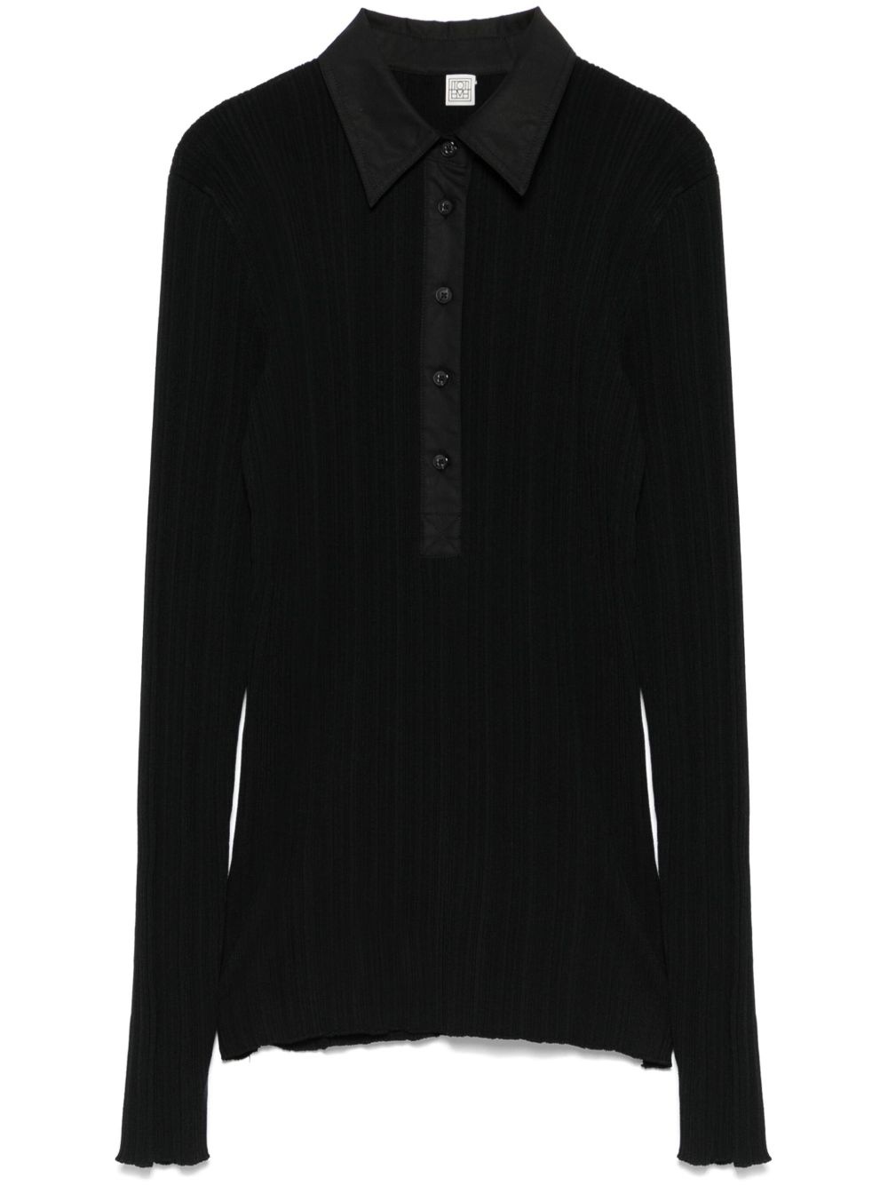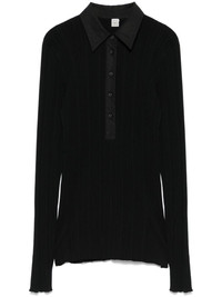 knitted polo top Highlights - Black - Front button placket - Polo collar - Long sleeves Imported Composition Cotton 100%, Acetate 82%, Polyamide 18% SIZE & FIT Model measurements Height 5 ft 10 in(1.78 m) Bust/Chest 33.85 in(86 cm) Hips 36.61 in(93 cm) Waist 26.77 in(68 cm) FittingInformation Designed for a close fit throughout Made with a midweight knit, this piece offers some stretch