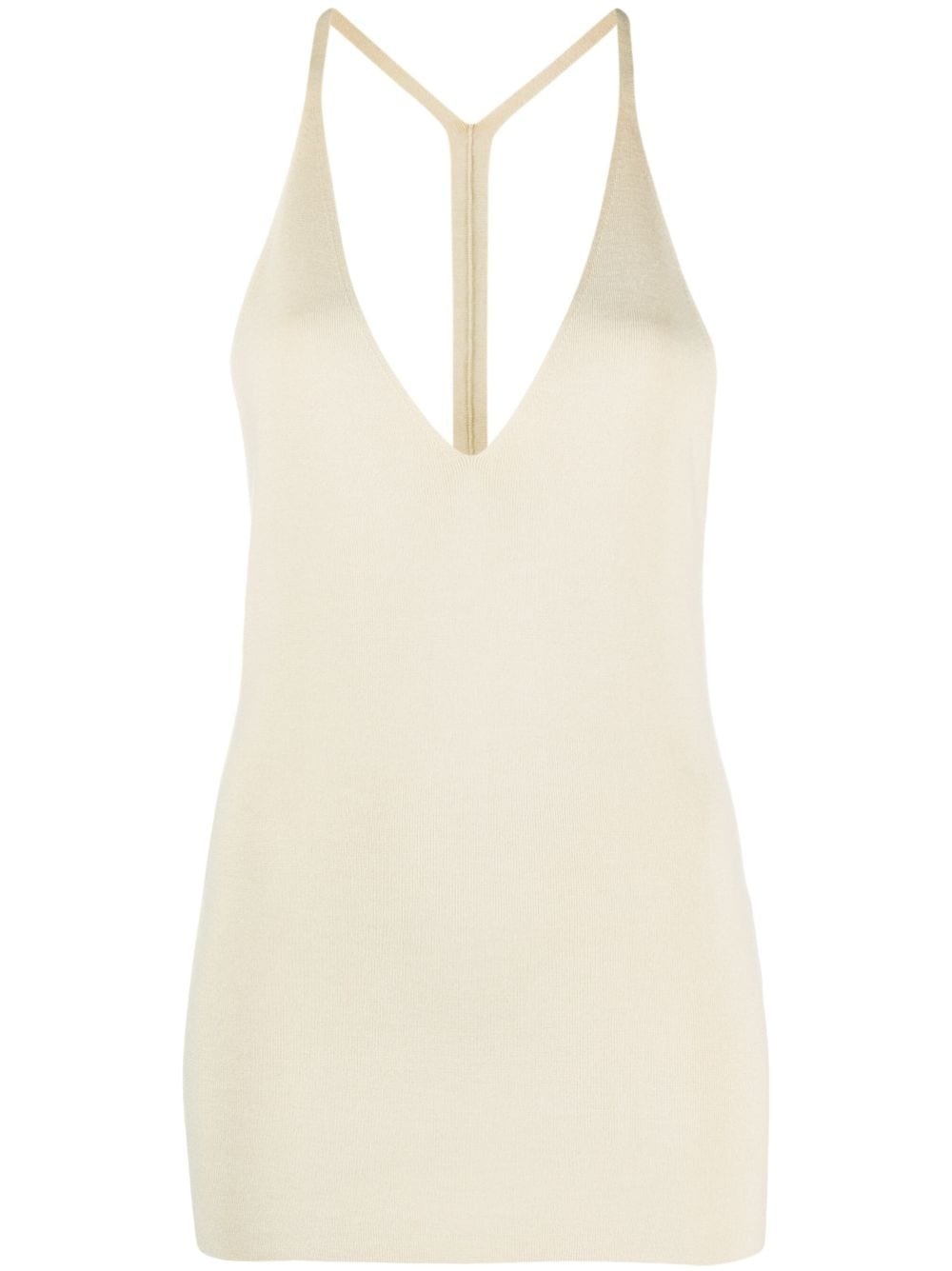 knitted wool-blend tank top This beige top reflects TOTEME's refined and understated aesthetic. It’s spun with fine wool and silk threads for softness with a low and slender racerback that puts a skin-baring twist on the traditionally sporty design element. Imported Composition Wool 55%, Silk 24%, Polyamide 18%, Elastane 3% SIZE & FIT Model measurements Height 5 ft 10 in(1.78 m) Bust/Chest 29.92 in(76 cm) Hips 34.64 in(88 cm) Waist 23.62 in(60 cm) Measurement LENGTH 14.96 in(38 cm) WAIST 22.83 in(58 cm) BUST 22.04 in(56 cm) Washing instructions Hand Wash
