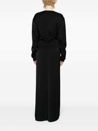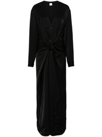 knot-detail satin dress Highlights - Black - Textured finish - V-neck - Long sleeves with buttoned cuffs - Knot detailing - Straight hem - Front button fastening Imported Composition Outer: Viscose 100% SIZE & FIT Model measurements Height 5 ft 9 in(1.75 m) Bust/Chest 34.64 in(88 cm) Hips 36.61 in(93 cm) Waist 26.37 in(67 cm) FittingInformation Designed for a loose fit at the chest with a close fit over the waist and hips Made from a midweight non-stretch fabric This piece fits true to size – take your usual size