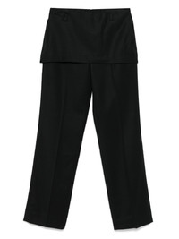 layered skirt trousers Highlights - Black - Rear zip fastening - Belt loops - Layered design - Straight leg Imported Composition Outer: Wool 100% Lining: Cotton 100% SIZE & FIT Model measurements Height 5 ft 11 in(1.8 m) Bust/Chest 31.49 in(80 cm) Hips 35.82 in(91 cm) Waist 24.8 in(63 cm) FittingInformation Designed for a straight-leg fit, these trousers allow for a close fit at the waist and an unrestricted, comfortable fit over the leg Made from a midweight non-stretch fabric