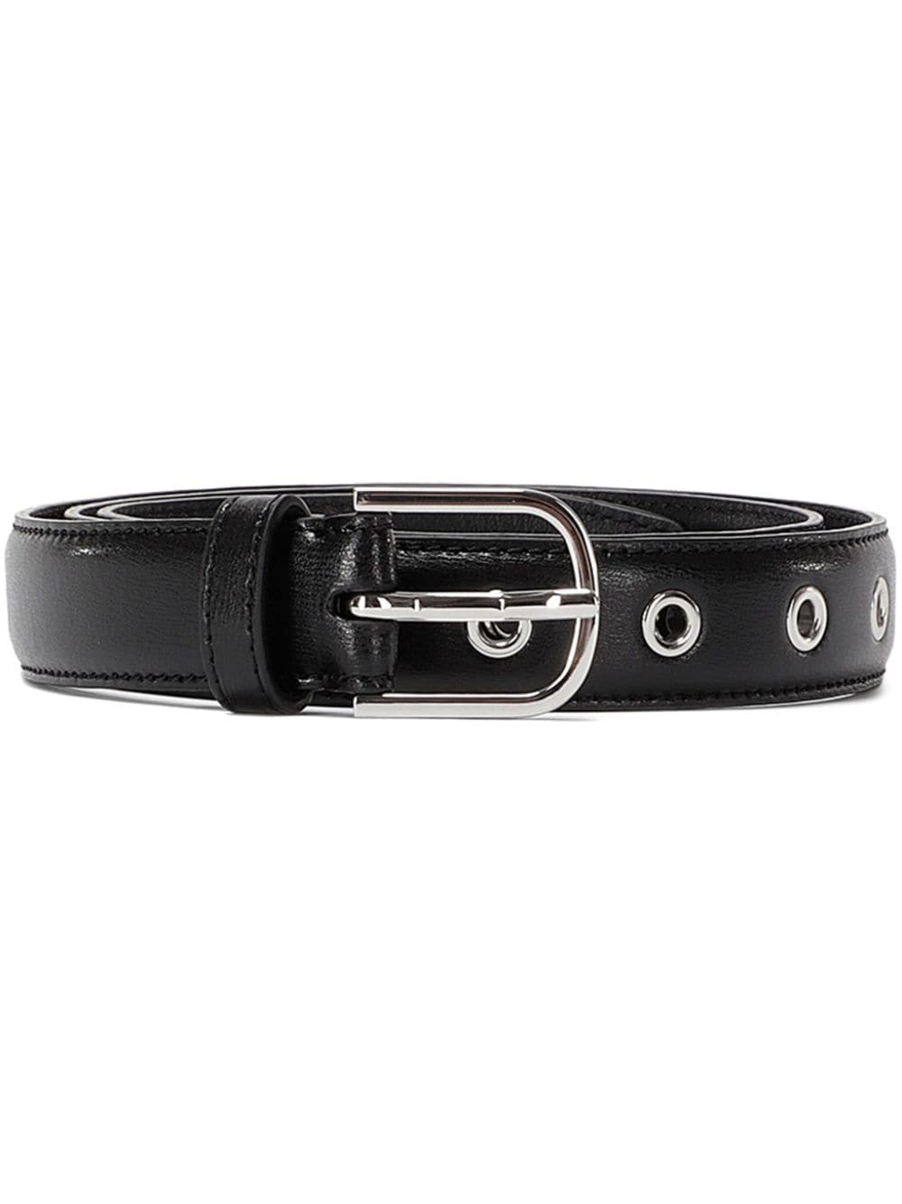 leather belt Highlights - Black - Leather - Smooth grain - Eyelet detailing - Silver-tone buckle fastening - Adjustable fit Made in Italy Composition Leather 100% SIZE & FIT Measurement Maximum Length 29.52 in(75 cm) Minimum Length 25.59 in(65 cm) WIDTH 1.18 in(3 cm)