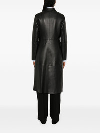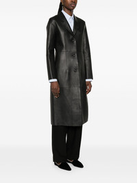 leather coat Highlights - Black - Front button fastening - Two side inset pockets - Rear slit - Notched lapels Imported Composition Lambskin 100% SIZE & FIT Model measurements Height 5 ft 11 in(1.8 m) Bust/Chest 32.67 in(83 cm) Hips 36.22 in(92 cm) Waist 24.4 in(62 cm) FittingInformation Designed for a slim fit that sits just away from the body offering a close yet comfortable fit Firm leather offering little flexibility to maintain its durability and sturdiness Measurement LENGTH 42.51 in(108 cm) WAIST 34.64 in(88 cm) BUST 35.43 in(90 cm) Shoulder Width 16.53 in(42 cm)