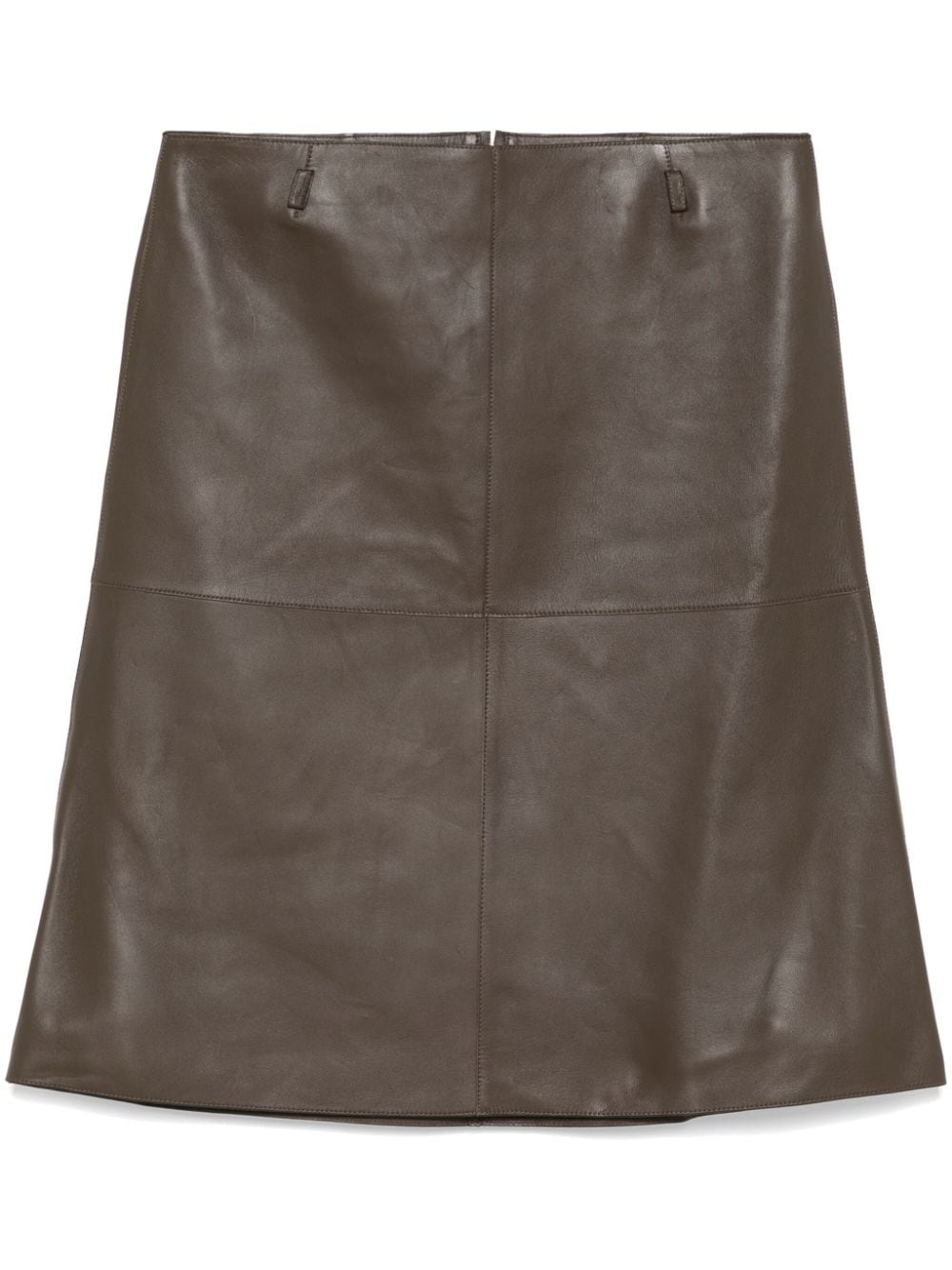 leather midi skirt Highlights - Brown - Calf leather - Rear zip fastening - Panelled design - Belt loops - A-line - Straight hem - Mid-length Imported Composition Calf Leather 100% SIZE & FIT Model measurements Height 5 ft 10 in(1.78 m) Bust/Chest 33.85 in(86 cm) Hips 36.61 in(93 cm) Waist 26.77 in(68 cm) FittingInformation This midi-length skirt is intended to be worn just below the waist Soft leather has a supple and smooth construction offering some flexibility