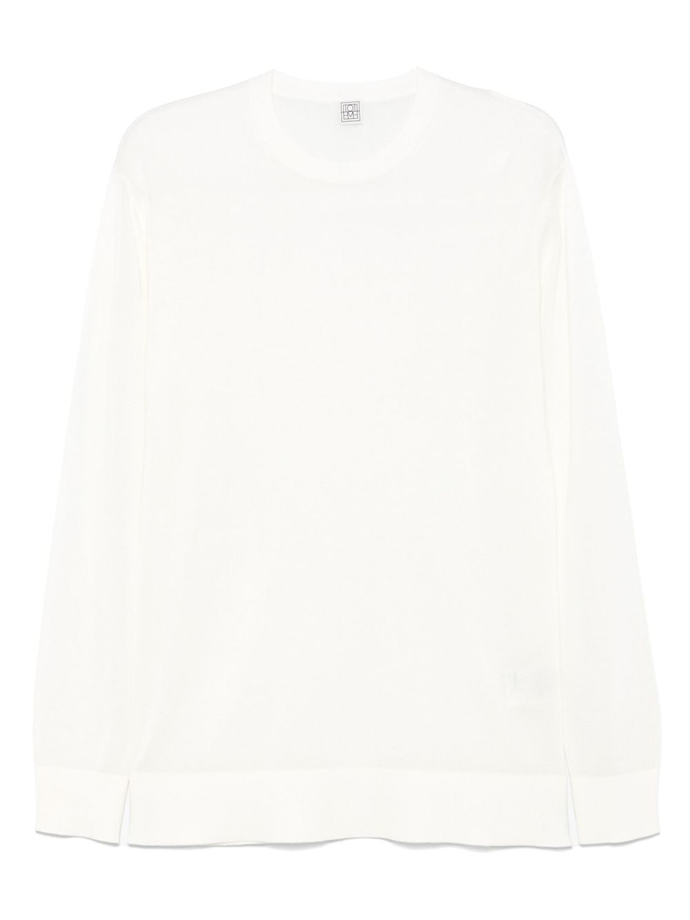 long-sleeved T-shirt Highlights - White - Crew neck - Drop shoulder - Ribbed trim Imported Composition Lyocell 88%, Cashmere 10%, Polyamide 2% SIZE & FIT Model measurements Height 5 ft 10 in(1.78 m) Bust/Chest 33.85 in(86 cm) Hips 36.61 in(93 cm) Waist 26.77 in(68 cm) FittingInformation Designed for a relaxed fit, this piece allows for comfort and movement when worn Made with a lightweight knit, this piece offers some stretch