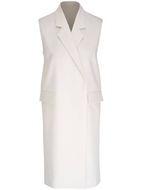 long sleeveless blazer Highlights - Off-white - Notched lapels - Sleeveless - Two side flap pockets - Full lining - Straight hem - No fastening Imported Composition Viscose 78%, Polyester 22% SIZE & FIT Measurement LENGTH 40.15 in(102 cm) WAIST 37.79 in(96 cm) BUST 35.43 in(90 cm) Shoulder Width 14.96 in(38 cm)