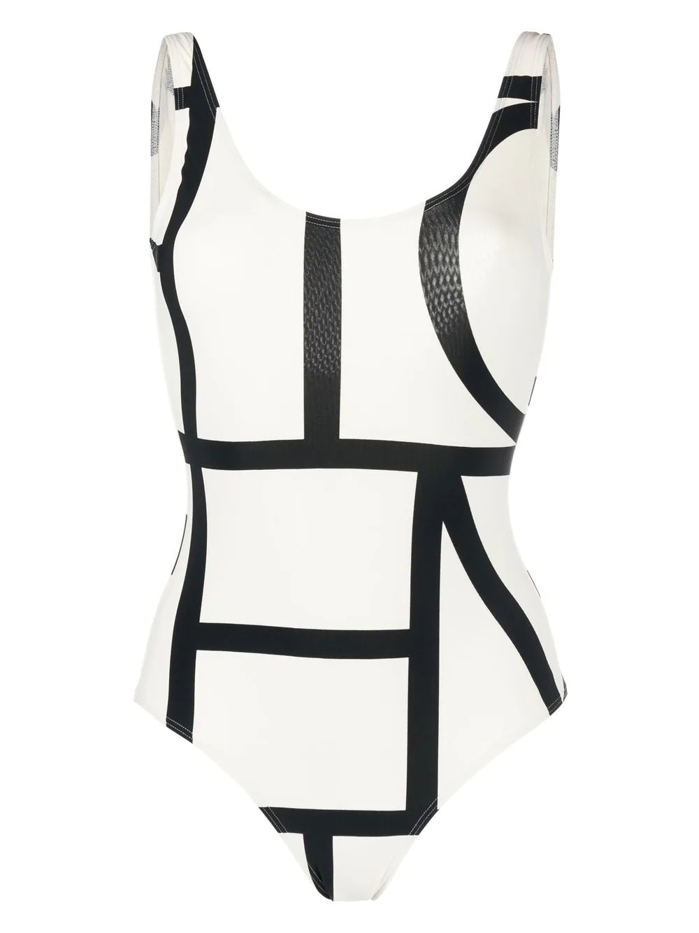 Monogram one-piece swimsuit Highlights - Monogram-print one-piece swimsuit from toteme featuring white/black, recycled polyamide blend, monogram pattern, scoop neck, wide shoulder straps, scoop back, partial lining and stretch-design. be mindful to try on swimwear over your own garments.. . Imported Composition Recycled Polyamide 73%, Elastane 27% SIZE & FIT FittingInformation This piece fits true to size – take your usual size Washing instructions Dry Clean Only