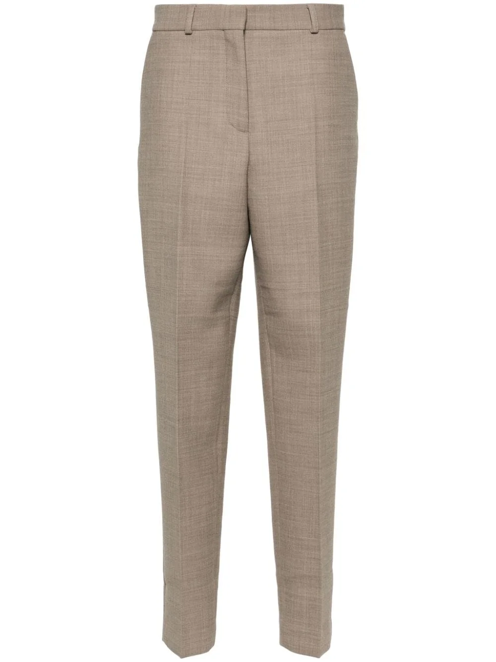melange-effect trousers Highlights - Light brown - Recycled polyester blend - Melange effect - Concealed front button, hook and zip fastening - Belt loops - Two side slash pockets - Pressed crease - Two rear button-fastening jetted pockets - Tailored design - Ankle-length - Tapered leg Imported Composition Recycled Polyester 53%, Recycled Wool 43%, Elastane 4% SIZE & FIT Model measurements Height 5 ft 9 in(1.75 m) Bust/Chest 34.64 in(88 cm) Hips 36.61 in(93 cm) Waist 26.37 in(67 cm) FittingInformation Designed for a tapered fit, these trousers allow for a close fit at the waist and a loose unrestricted fit over the leg with a closer fit towards the ankle Made from a midweight stretch fabric, this piece offers elasticity and flexibility when worn