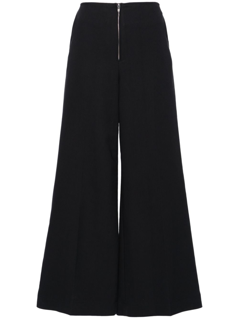 mid-rise wide-leg trousers Highlights - Black - Cotton - Crepe texture - Silver-tone hardware - Wide leg - Mid-rise - Short front zip fastening - Two diagonal pockets to the sides - Two rear welt pockets - Pressed crease - Straight hem Imported Composition Cotton 100% SIZE & FIT Model measurements Height 5 ft 10 in(1.78 m) Bust/Chest 33.07 in(84 cm) Hips 36.61 in(93 cm) Waist 24.8 in(63 cm) FittingInformation Designed with a wide-leg cut, these trousers allow for a close fit at the waist and offer a loose and roomy fit over the leg Made from a midweight non-stretch fabric This piece fits true to size – take your usual size
