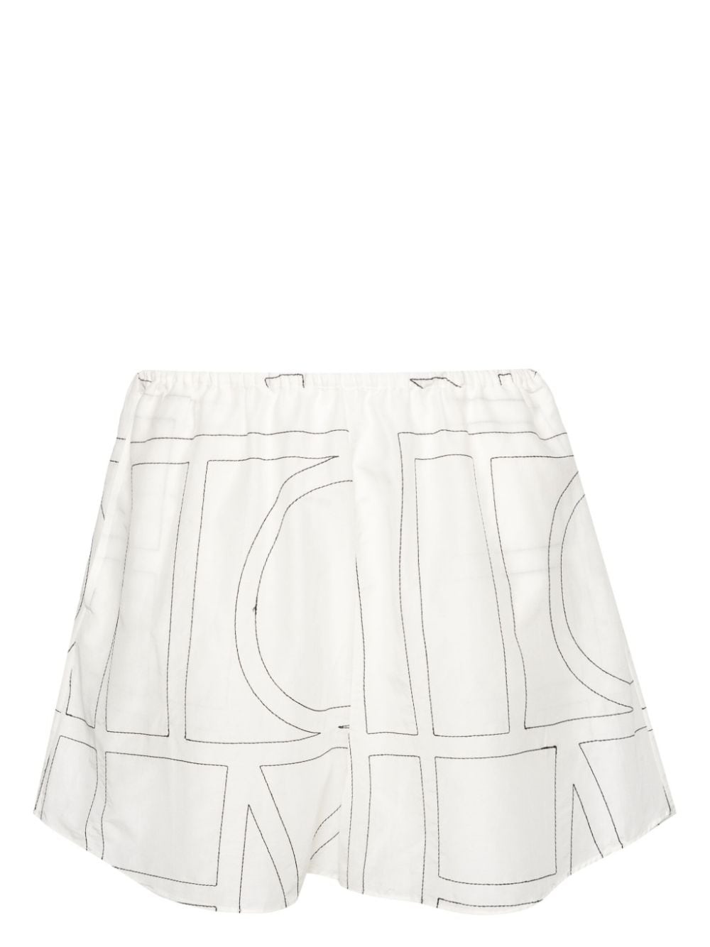 monogram-embroidered shorts Highlights - White/black - Organic cotton/lyocell - Embroidered monogram pattern - Mid-rise - Elasticated waistband - Two side slit pockets - Unlined - Curved hem - Thigh-length Imported Composition Organic Cotton 50%, Lyocell 50% SIZE & FIT Measurement FRONT RISE 12 in(30.5 cm) WAIST 26.77 in(68 cm)