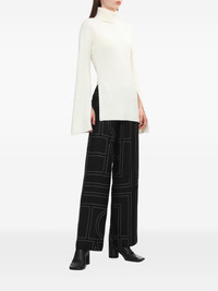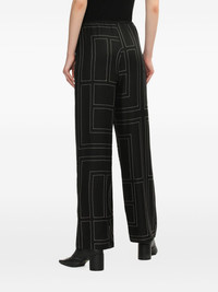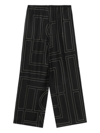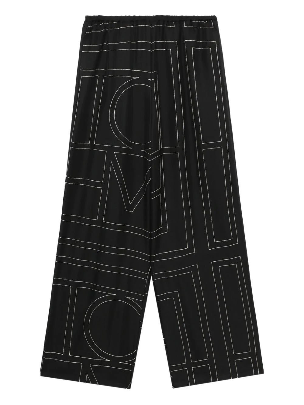 monogram geometric trousers TOTEME explores the appeal of a modern uniform through distinctive designs and meticulous craftsmanship. Cut from a silk twill fabric, this subtle pair has been detailed with a simple monogram pattern in contrast stitching. The elasticated waist and relaxed silhouette allow for maximum comfort when lounging. Highlights - Black - Geometric pattern - Monochrome embroidery - Elasticated waistband - Straight leg - Wide leg Imported Composition Silk 100% Washing instructions Dry Clean Only