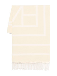 monogram-jacquard scarf Highlights - Light beige - Mini logo tag - Rectangle shape - Fringed edge Made in Italy Composition Cotton 85%, Nylon 15% SIZE & FIT Measurement LENGTH 83.46 in(212 cm) WIDTH 34.64 in(88 cm)