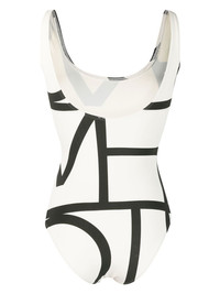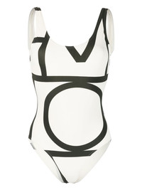 Monogram one-piece swimsuit TOTEME’s swimsuit is a graphic twist on classic one-piece styles, thanks to the brand’s monogram in a deep shade of green that pops against the white backdrop. It’s crafted from quick-drying, four-way stretch fabric treated with SPF50 to help protect against sun rays. Highlights - White - Dark green - Recycled polyamide - Stretch-design - Monogram print - Scoop neck - Scoop back - Thin shoulder straps - Be mindful to try on swimwear over your own garments. Imported Composition Lining: Recycled Polyamide 73%, Spandex/Elastane 27% Outer: Recycled Polyamide 73%, Spandex/Elastane 27% Washing instructions Machine Wash