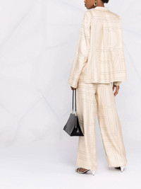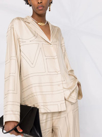 monogram silk pyjama shirt ivory/black silk monogram pattern camp collar front button fastening long sleeves straight hem This print was created to be entirely unique and might differ slightly from the item pictured. Made in Italy Composition Silk 100% SIZE & FIT Model measurements Height 5 ft 11 in(1.8 m) Bust/Chest 31.88 in(81 cm) Hips 35.03 in(89 cm) Waist 24.01 in(61 cm) Measurement SLEEVE LENGTH 23.81 in(60.5 cm) Shoulder Width 18.58 in(47.2 cm) LENGTH 27.16 in(69 cm) BUST 48.03 in(122 cm) WAIST 51.18 in(130 cm) FittingInformation This piece fits large – you might want to get one size down Cut for a loose fit Made with a mid-weight non-stretch fabric Measurement BUST 46.45 in(118 cm) LENGTH 26.96 in(68.5 cm) Shoulder Width 17.99 in(45.7 cm) SLEEVE LENGTH 23.42 in(59.5 cm) WAIST 49.6 in(126 cm) Washing instructions Dry Clean Only