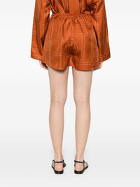 monogram silk shorts Highlights - Camel brown - Elasticated waistband - Two side inset pockets - Curved hem Imported Composition Silk 100% SIZE & FIT Model measurements Height 5 ft 10 in(1.78 m) Bust/Chest 33.85 in(86 cm) Hips 36.61 in(93 cm) Waist 26.77 in(68 cm) FittingInformation Designed for a relaxed, roomy fit The elasticated waist allows for a comfortable fit Made from a lightweight non-stretch fabric