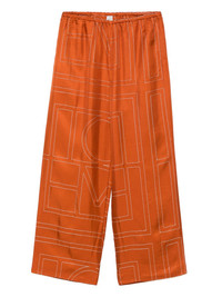 monogram silk trousers Highlights - Terracotta brown - Elasticated waistband - Two side inset pockets - Wide leg Imported Composition Silk 100% SIZE & FIT Model measurements Height 5 ft 10 in(1.78 m) Bust/Chest 33.85 in(86 cm) Hips 36.61 in(93 cm) Waist 26.77 in(68 cm) FittingInformation Designed for a straight-leg fit, these trousers allow for a close fit at the waist and an unrestricted, comfortable fit over the leg The elasticated waist allows for a comfortable fit Made from a midweight non-stretch fabric