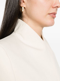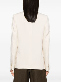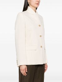 no-lapels single-breasted blazer Highlights - Cream white - Jersey texture - No lapels - Shoulder pads - Long sleeves - Buttoned cuffs - Two front flap pockets - Stitched pockets - English rear vents - Satin lining - Front button fastening Imported Composition Outer: Viscose 78%, Polyester 22% Lining: Viscose 100% SIZE & FIT Model measurements Height 5 ft 11 in(1.8 m) Bust/Chest 33.07 in(84 cm) Hips 37.4 in(95 cm) Waist 25.19 in(64 cm) FittingInformation Designed for a boxy fit, intended for a loose fit throughout The internal shoulder pads offer a structured shape Made from a midweight non-stretch fabric This piece fits true to size – take your usual size