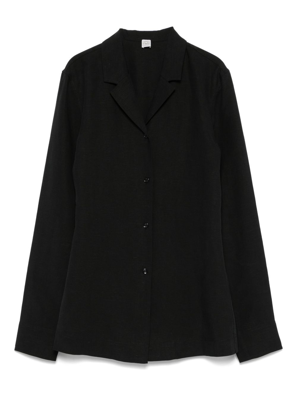 notched-collar shirt Highlights - Black - Front button fastening - Long sleeves - Straight hem Imported Composition Lyocell 75%, Linen/Flax 25% SIZE & FIT Model measurements Height 5 ft 10 in(1.78 m) Bust/Chest 33.85 in(86 cm) Hips 36.61 in(93 cm) Waist 26.77 in(68 cm) FittingInformation Designed for a slim fit that sits just away from the body offering a close yet comfortable fit Made from a midweight non-stretch fabric