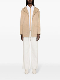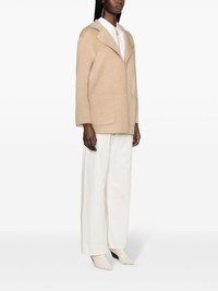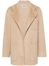notched-lapels melange jacket This beige patch-pocket jacket by TOTEME is a testament to the brand's minimalist and elegant design philosophy. Crafted from soft and lightweight double wool, it boasts a boxy fit and a timeless stand collar. Highlights - Beige - Brushed effect - Melange effect - Notched lapels - Open front - Long sleeves - Three front patch pockets - Straight hem - Unlined Made in United Kingdom Composition Wool 100% SIZE & FIT Model measurements Height 5 ft 11 in(1.8 m) Bust/Chest 34.25 in(87 cm) Hips 35.82 in(91 cm) Waist 24.8 in(63 cm) FittingInformation Designed for a relaxed fit, this piece allows for comfort and movement when worn Made from a midweight fabric This piece fits true to size – take your usual size Washing instructions Dry Clean Only