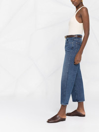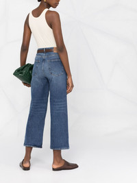 organic cotton cropped flared jeans Highlights - Blue - Organic cotton - Cropped - Flared - Mid-rise - Logo patch to the rear - Front button and zip fastening - Belt loops Made in Italy Composition Organic Cotton 100% SIZE & FIT Model measurements Height 5 ft 10 in(1.78 m) Bust/Chest 31.49 in(80 cm) Hips 37 in(94 cm) Waist 23.62 in(60 cm) FittingInformation This piece fits true to size. We recommend you get your regular size Designed to be fitted at the waist and hips, loose over the leg Made with a mid-weight non-stretch fabric Washing instructions Machine Wash