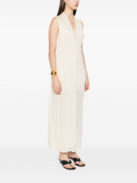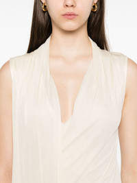 overlapped scarf dress Highlights - Ecru - V-neck - Sleeveless - Scarf detailing - Partial lining Imported Composition Viscose 100% SIZE & FIT Model measurements Height 5 ft 10 in(1.78 m) Bust/Chest 33.85 in(86 cm) Hips 36.61 in(93 cm) Waist 26.77 in(68 cm) FittingInformation Designed for a slim fit that sits just away from the body offering a close yet comfortable fit Made from a lightweight non-stretch fabric