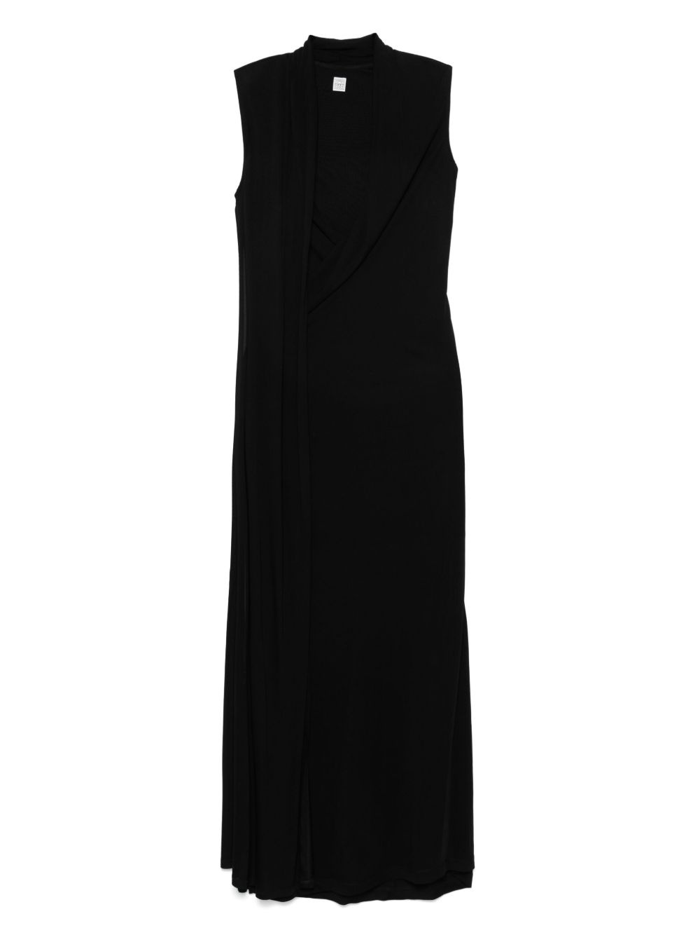 overlapped scarf dress Highlights - Black - Side zip fastening - V-neck - Sleeveless - Attached scarf Imported Composition Viscose 100% SIZE & FIT Model measurements Height 5 ft 10 in(1.78 m) Bust/Chest 33.85 in(86 cm) Hips 36.61 in(93 cm) Waist 26.77 in(68 cm) FittingInformation Designed for a slim fit that sits just away from the body offering a close yet comfortable fit Made from a lightweight non-stretch fabric