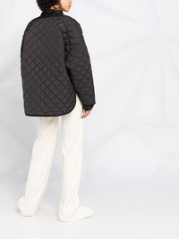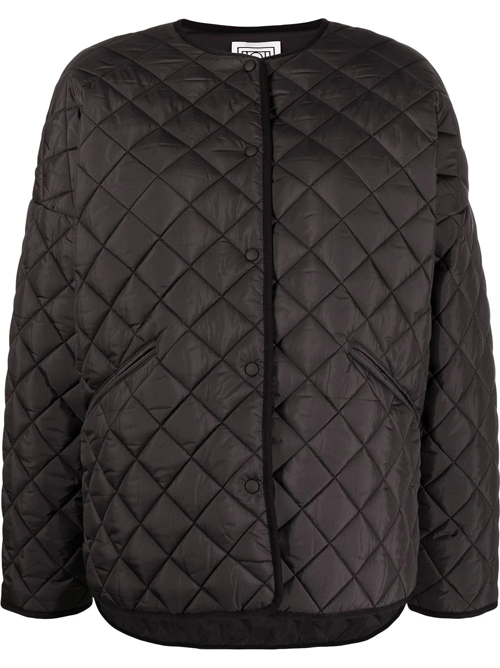 drop-shoulder quilted jacket When the days start getting a little chilly, TOTEME's lightly padded jacket is what you'll reach for. It offers just enough warmth. Wrap up. Highlights - Black - Round neck - Front press-stud fastening - Two front welt pockets - Long sleeves - Quilted - High-low hem - Lightly padded panels Made in Italy Composition Outer: Polyester 100% Lining: Polyester 100% SIZE & FIT Model measurements Height 5 ft 10 in(1.78 m) Bust/Chest 31.88 in(81 cm) Hips 35.82 in(91 cm) Waist 24.4 in(62 cm) Measurement WAIST 48.03 in(122 cm) BUST 48.81 in(124 cm) FittingInformation This piece fits true to size. We recommend you get your regular size Cut for a loose fit Made with a mid-weight non-stretch fabric Washing instructions Dry Clean Only