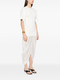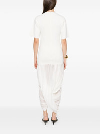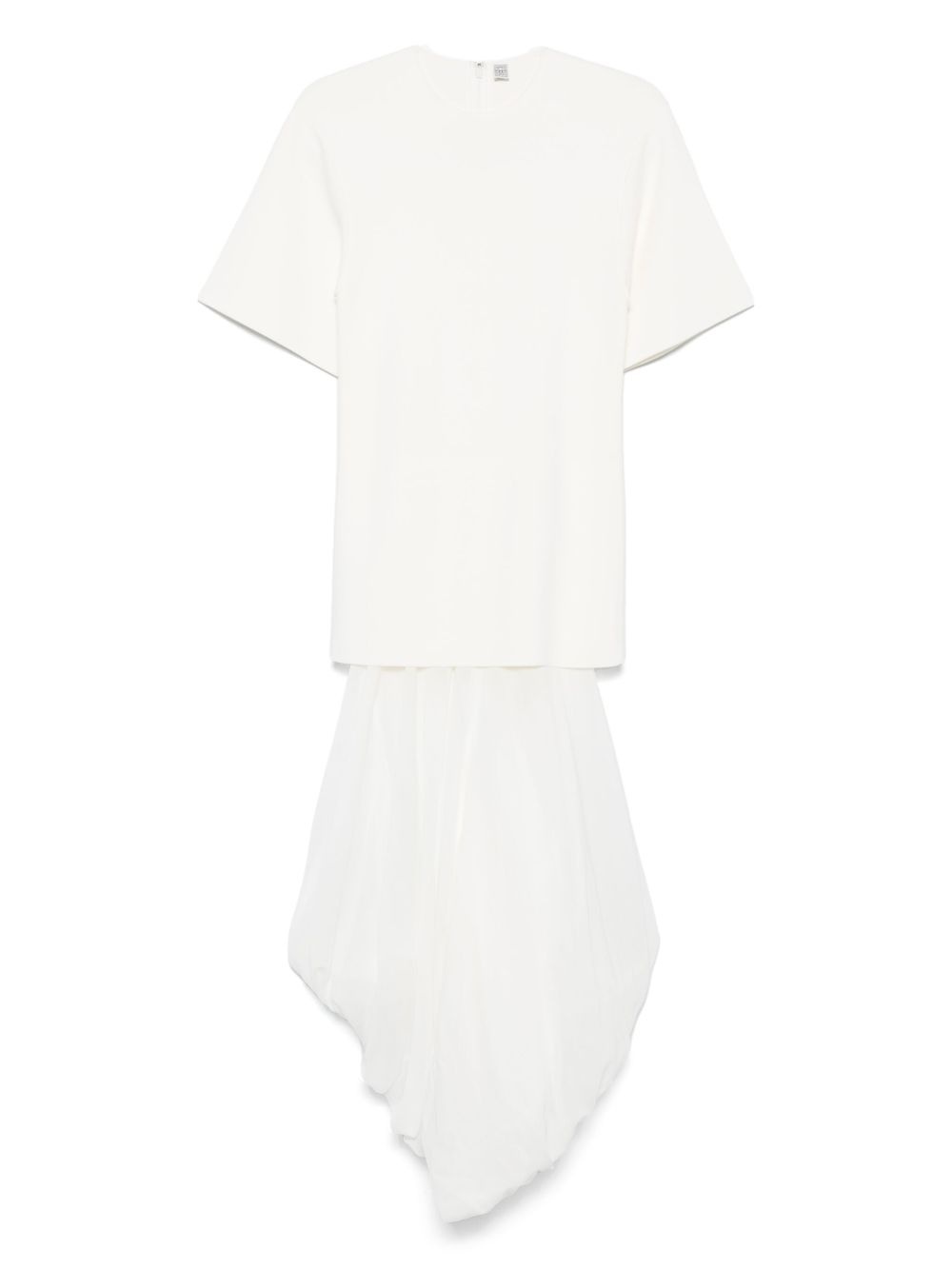 panelled T-shirt dress Highlights - Ecru - Crew neck - Short sleeves - Draped design - Semi-sheer panels Imported Composition Lyocell 60%, Viscose 53%, Recycled Polyamide 45%, Organic Cotton 40%, Elastane 2% SIZE & FIT Model measurements Height 5 ft 10 in(1.78 m) Bust/Chest 33.85 in(86 cm) Hips 36.61 in(93 cm) Waist 26.77 in(68 cm) FittingInformation Designed for a slim fit that sits just away from the body offering a close yet comfortable fit Made from a midweight stretch fabric, this piece offers elasticity and flexibility when worn