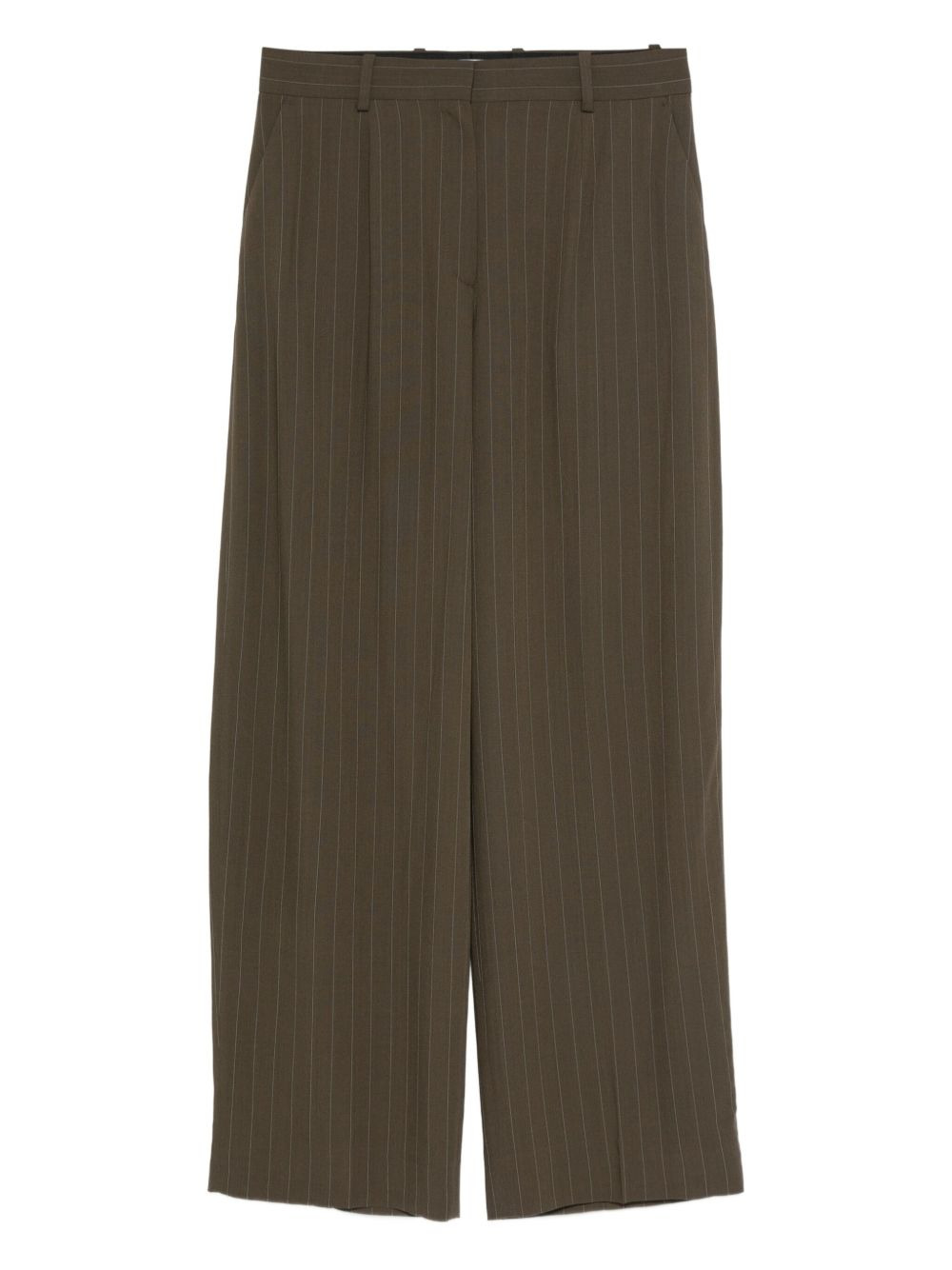 pinstripe wide trousers Highlights - Brown - Pinstripe pattern - High waist - Front pleats - Button fly Imported Composition Viscose 59%, RWS Wool 40%, Polyester 1% SIZE & FIT Model measurements Height 5 ft 9 in(1.75 m) Bust/Chest 34.64 in(88 cm) Hips 36.61 in(93 cm) Waist 26.37 in(67 cm) Washing instructions Read Manufacturer Guidelines