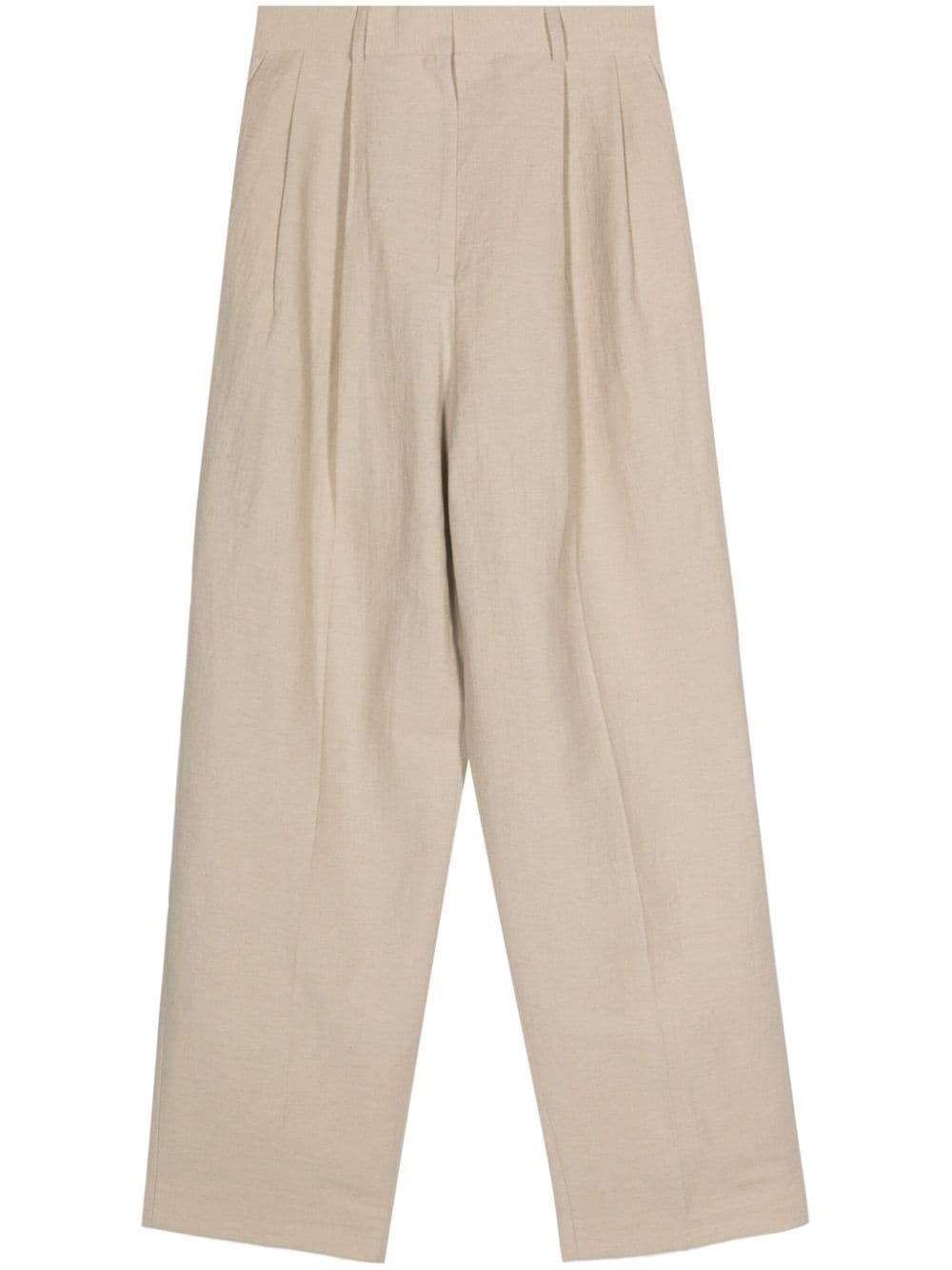Double-Pleated Linen Tailored Trousers