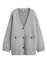 pocket v-neck cardigan Highlights - Grey - V-neck - Button fastening - Patch pockets - Ribbed cuffs - Ribbed hem Imported Composition Cashmere 53%, RWS Wool 44%, Elastane 3% Washing instructions Read Manufacturer Guidelines