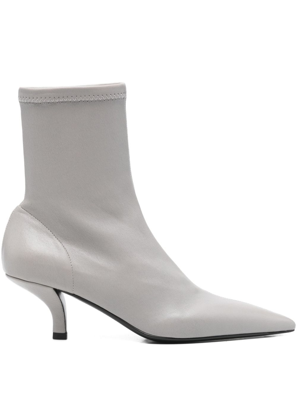 pointed-toe leather boots Highlights - Grey - Pointed toe - Stiletto heel - Stitching details Made in Italy Composition Lining: Lambskin 100% Sole: Calf Leather 100% Outer: Lambskin 100%