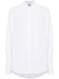 tuxedo shirt Highlights - Optical white - Organic cotton - Poplin texture - Front button fastening - Pointed flat collar - Long sleeves - Buttoned cuffs - Curved hem Imported Composition Organic Cotton 100% SIZE & FIT Model measurements Height 5 ft 9 in(1.76 m) Bust/Chest 31.88 in(81 cm) Hips 35.43 in(90 cm) Waist 24.8 in(63 cm) FittingInformation Designed for an oversized fit, offering additional room throughout Made from a midweight non-stretch fabric
