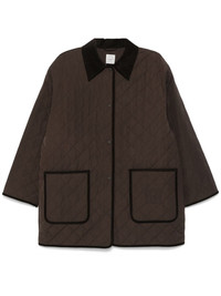 quilted jacket Highlights - Coffee brown - Front press-stud fastening - Two front patch pockets - English rear vents - Corduroy collar Made in United States Composition Cotton 100% SIZE & FIT Measurement SLEEVE LENGTH 24.21 in(61.5 cm) LENGTH 33.85 in(86 cm) WAIST 54.33 in(138 cm) Washing instructions Dry Clean Only