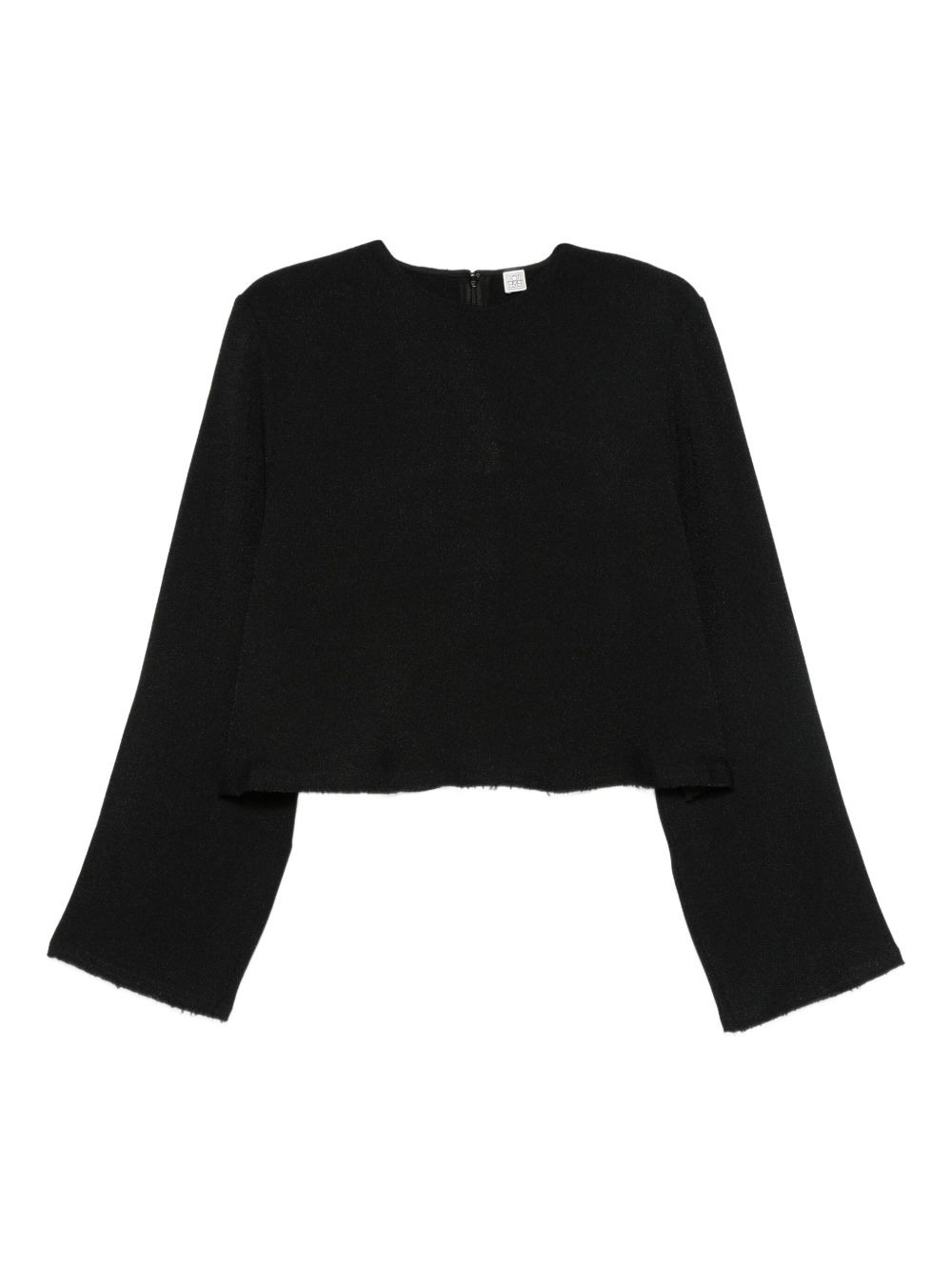 raw-hem blouse Highlights - Black - Round neck - Long sleeves - Raw hem - Cropped Imported Composition Viscose 100% SIZE & FIT Model measurements Height 5 ft 8 in(1.73 m) Bust/Chest 29.92 in(76 cm) Hips 33.07 in(84 cm) Waist 23.22 in(59 cm) Washing instructions Read Manufacturer Guidelines