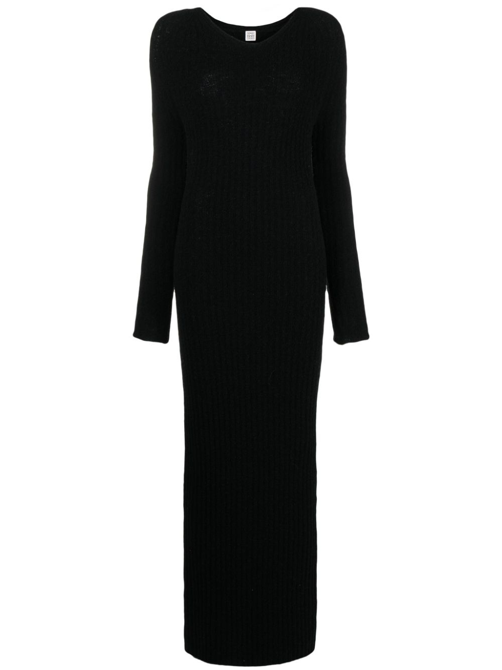 ribbed wool-blend dress This maxi dress is a testament to TOTEME's penchant for minimalist designs. It’s spun from a black wool-blend to a V-neck silhouette. Highlights - Black - Wool blend - Knitted construction - Ribbed knit - Short pile design - V-neck - Long sleeves - Long length - Straight hem Imported Composition Wool 65%, Polyamide 34%, Elastane 1% SIZE & FIT Model measurements Height 5 ft 10 in(1.77 m) Bust/Chest 33.07 in(84 cm) Hips 37 in(94 cm) Waist 24.8 in(63 cm) Measurement SLEEVE LENGTH 19.29 in(49 cm) HIPS 25.98 in(66 cm) LENGTH 50.39 in(128 cm) WAIST 25.19 in(64 cm) BUST 27.55 in(70 cm) FittingInformation Designed for a close fit throughout Made with a midweight knit, this piece offers some stretch This piece fits true to size – take your usual size