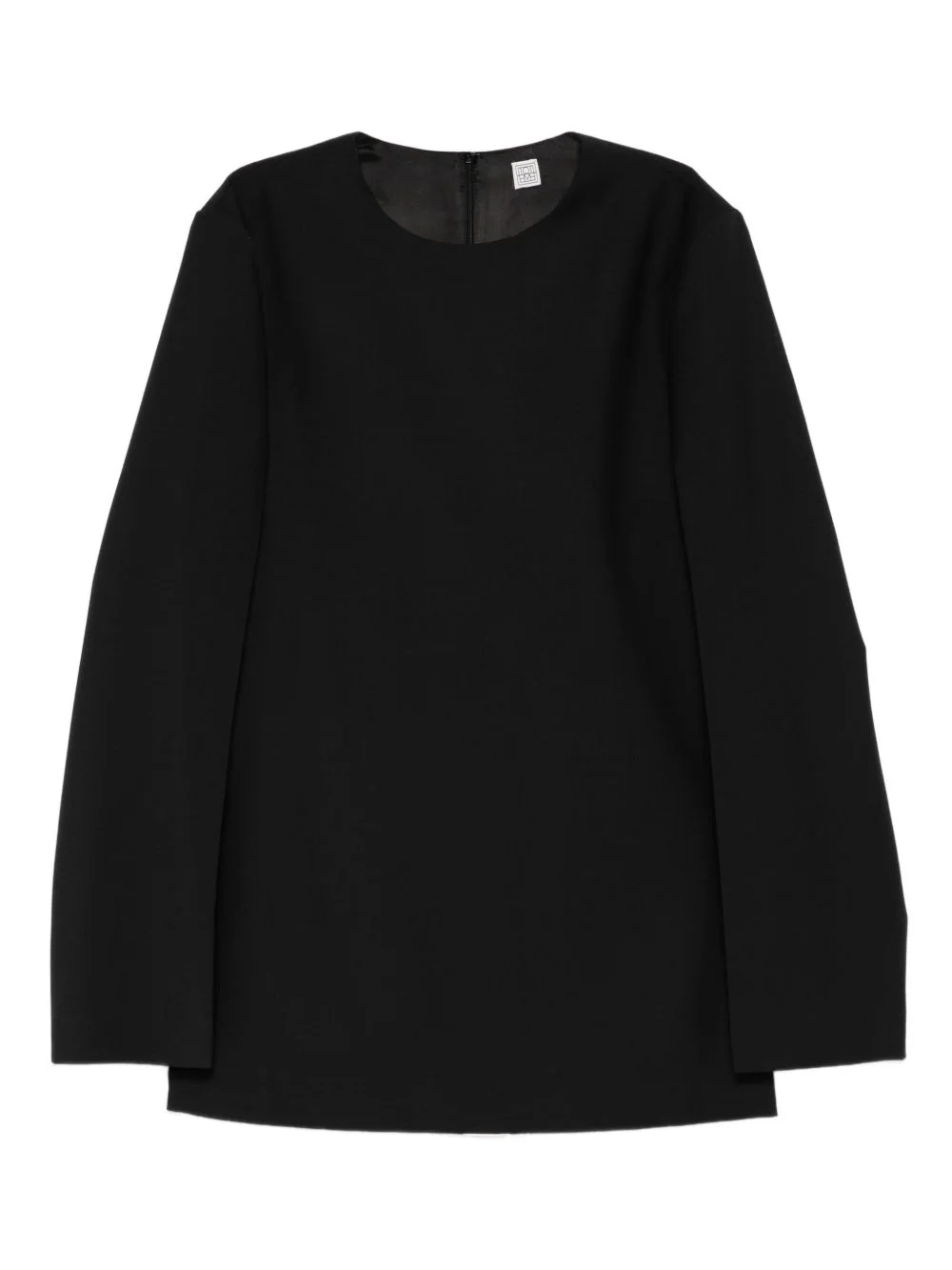 round-neck blouse Highlights - Black - Round neck - Long sleeves - Rear zip fastening Imported Composition Outer: Wool 100% SIZE & FIT Model measurements Height 5 ft 9 in(1.76 m) Bust/Chest 33.85 in(86 cm) Hips 35.43 in(90 cm) Waist 25.59 in(65 cm) Washing instructions Dry Clean Only