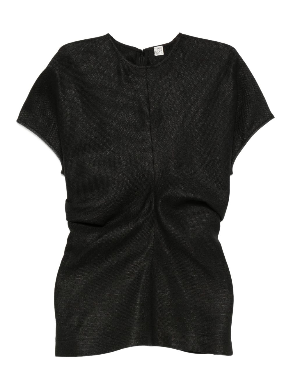 ruched-waist top Highlights - Black - Short sleeves - Round neck Imported Composition Viscose 67%, Linen/Flax 24%, Cotton 9% SIZE & FIT Model measurements Height 5 ft 11 in(1.8 m) Bust/Chest 31.49 in(80 cm) Hips 36.61 in(93 cm) Waist 24.4 in(62 cm) Washing instructions Dry Clean Only